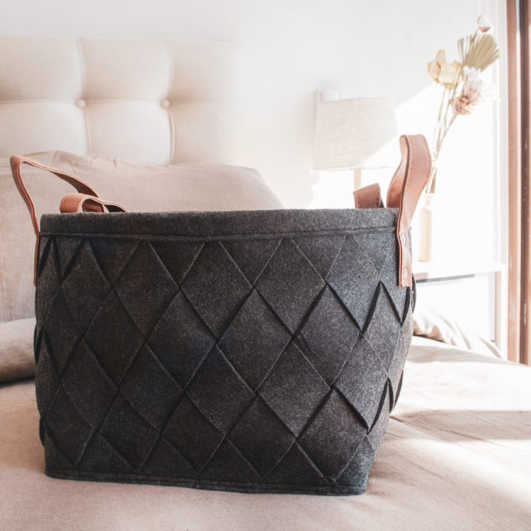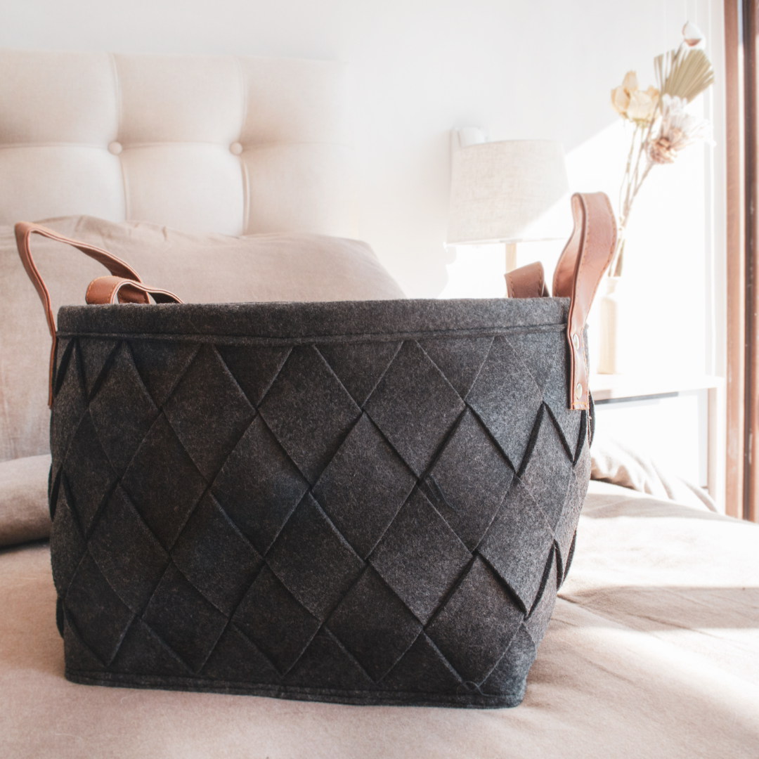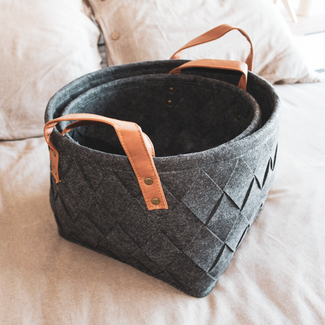 Nuestros canastos de fieltro son súper prácticos y lindos que los vas a querer usar para organizar todos los espacios de tu casa! Al estar hechos de fieltro, su textura suave los hace una excelente opción para guardar ropa sin engancharse. Se pueden utilizar a la vista o dentro de algún mueble y en ellos puedes organizar accesorios, juguetes, artículos de cuidado personal, incluso revistas y libros.
