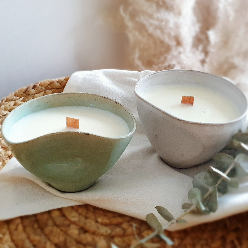La cera de soja es 100% ecológica, natural y tiene una mayor capacidad de aroma y duración. Son ideales para meditaciones y aromaterapia. Vienen con pabilo de madera que le da un toque elegante y rústico a la vez.