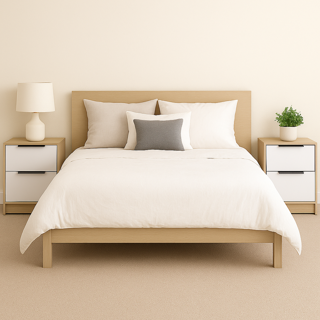 Veladores Kaia ideal para armar tu cuarto con éste par de mesas de noche románticas y cálidas, con tonos iluminados como el rovere y blanco, le darán luminosidad a tu habitación.