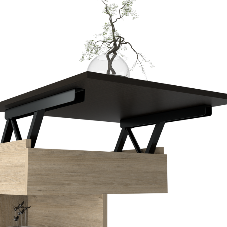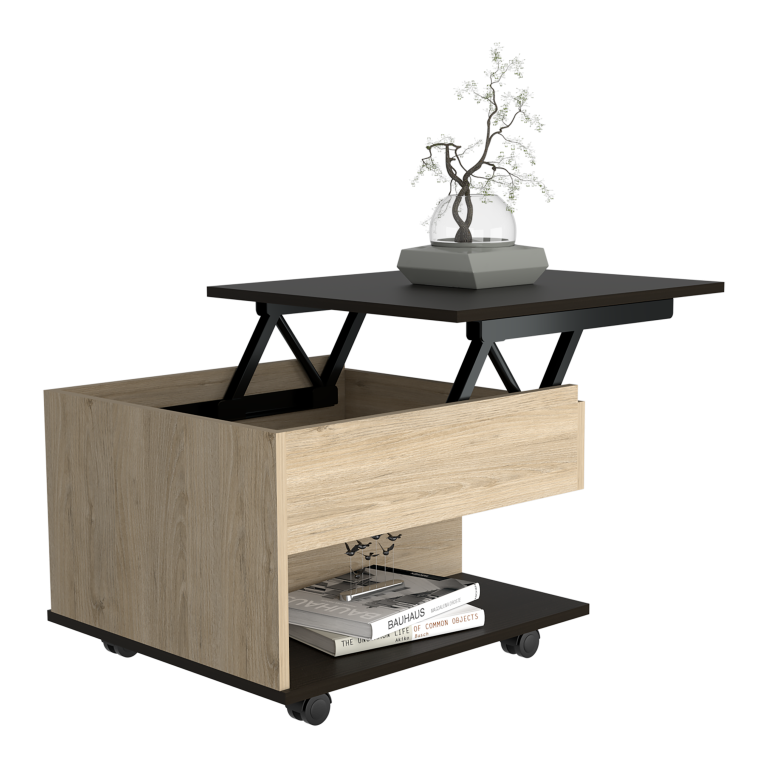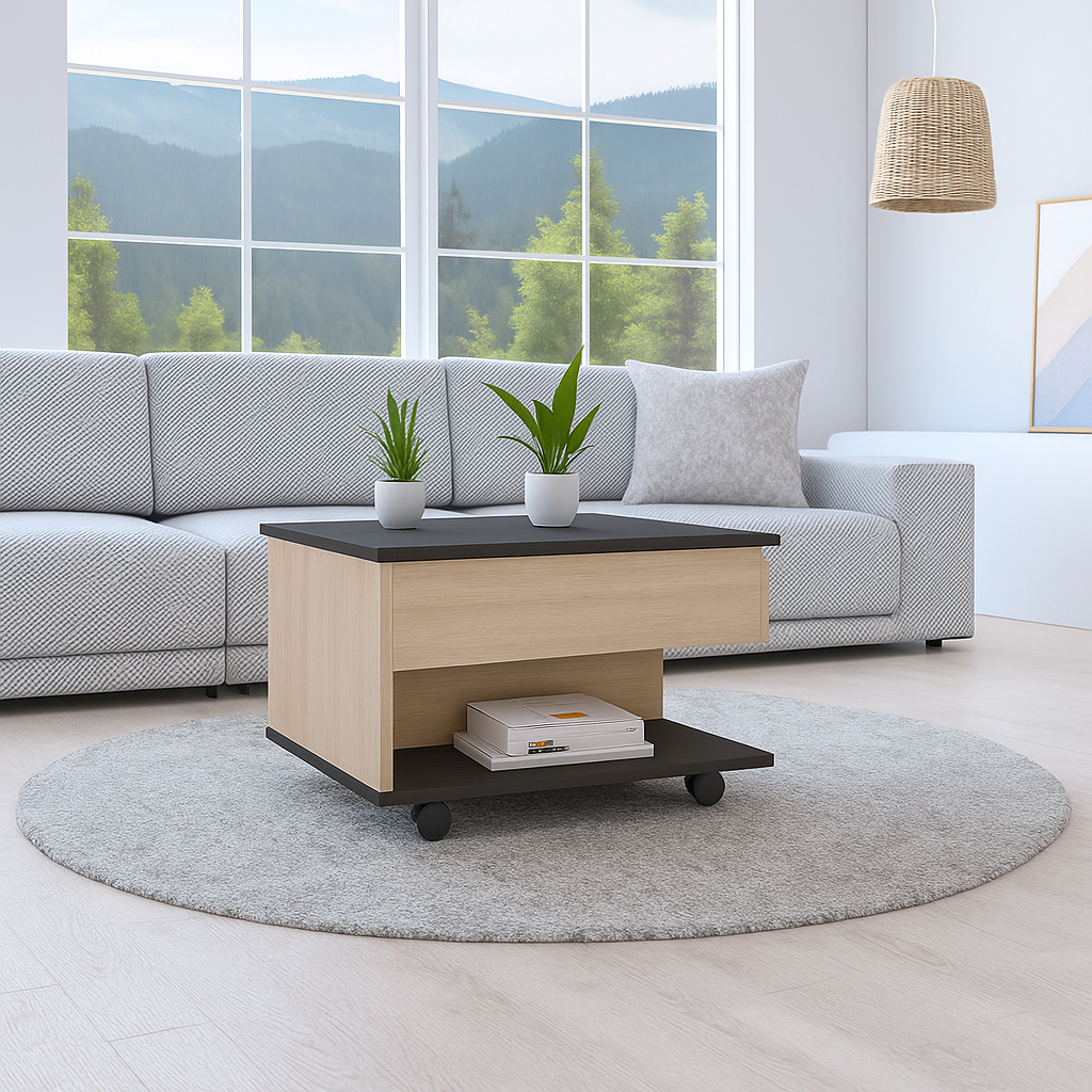 Mesa de centro 5G es un mueble funcional en el cuál podrás extender la mesada y tenerla a mejor alcance. Además su función permite el almacenamiento de objetos en su interior y cuenta con un estante en su inferior. Elije la tonos de madera que más te gusten para tu living y sorprende a tus invitados con ésta mesa de centro.