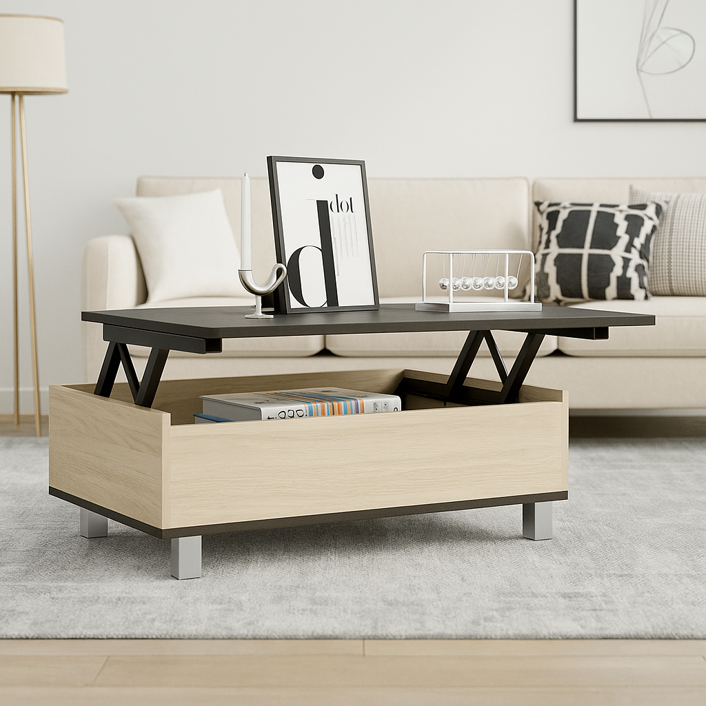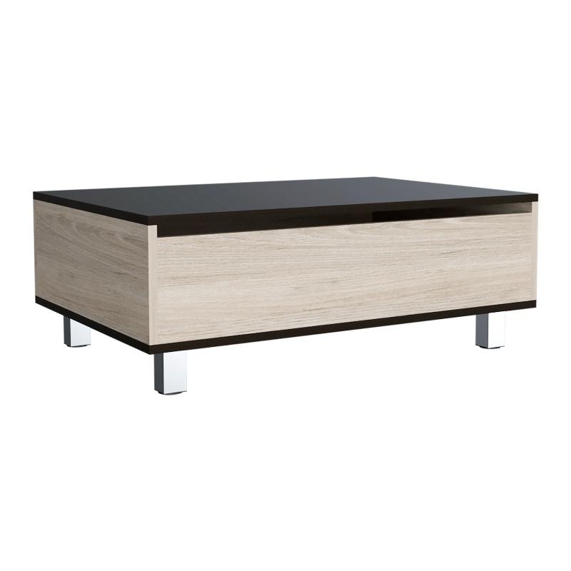 Mesa ideal para el centro de tu living o sala de entretenimiento. Un mueble funcional con capacidad de almacenaje en su interior. Ofrece un estilo elegante y práctico para la decoración y organización de tu hogar. Lo puedes encontrar en otras combinaciones de colores madera.