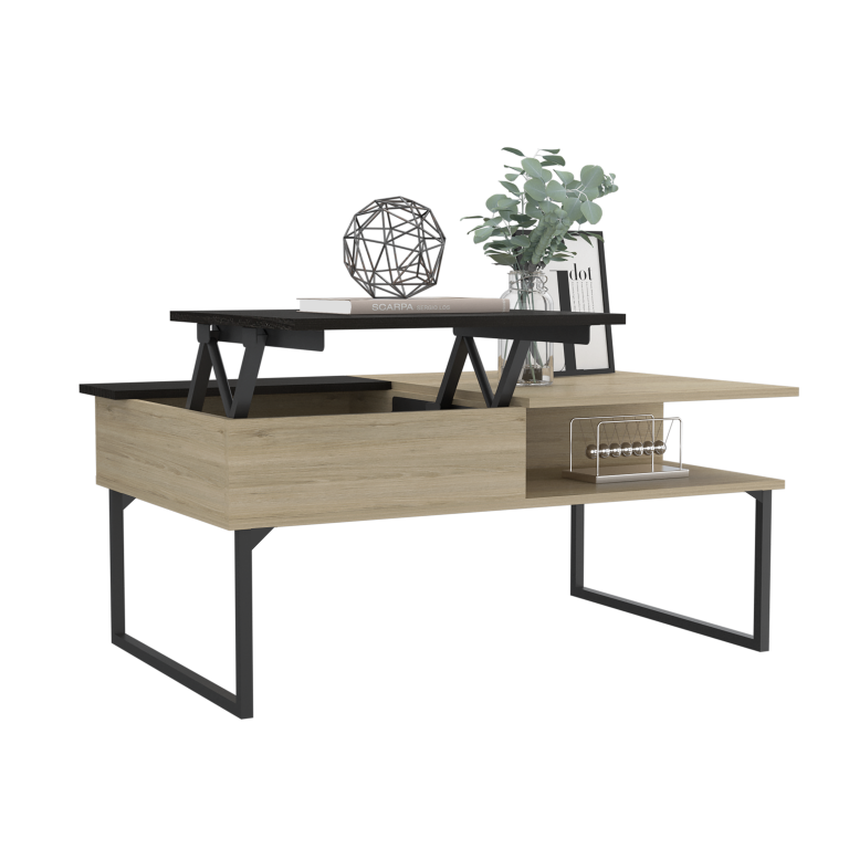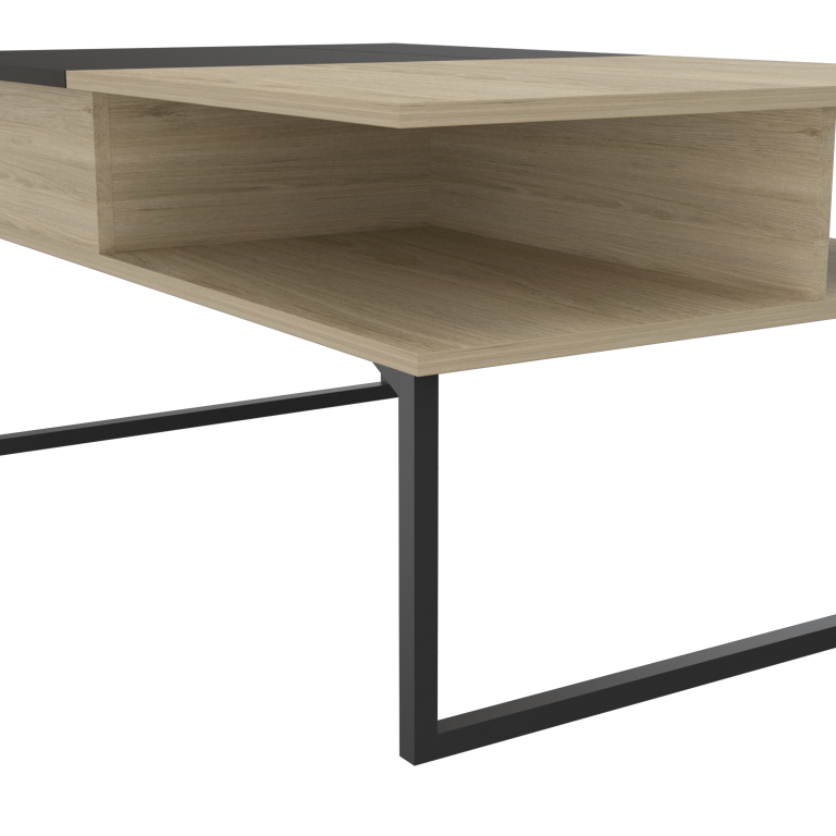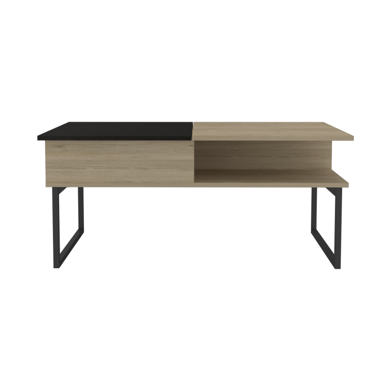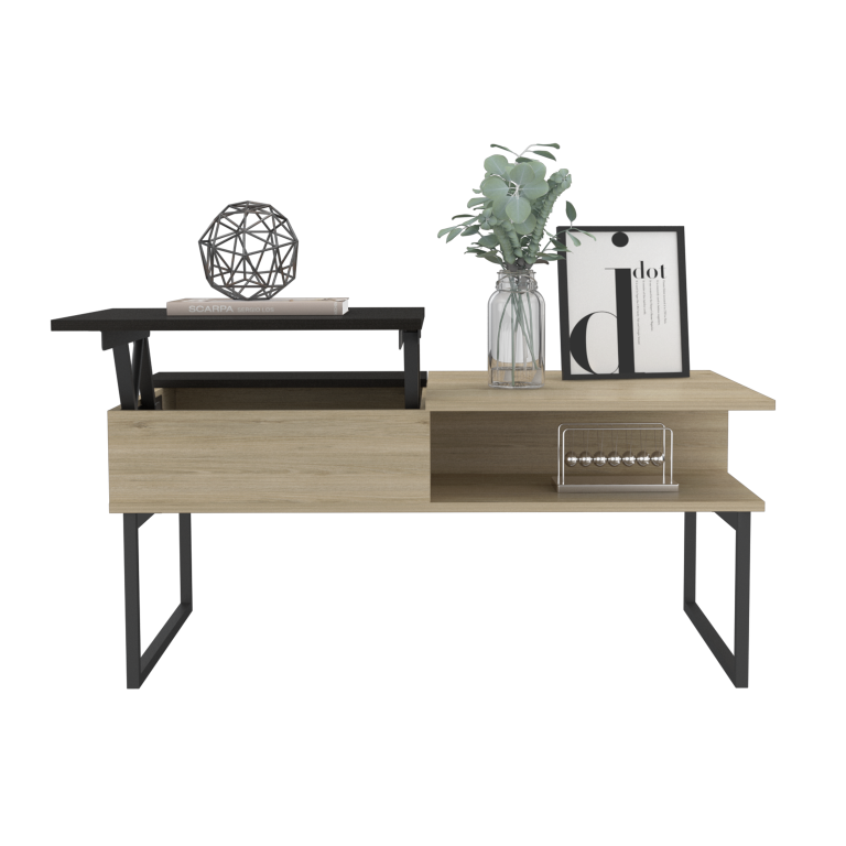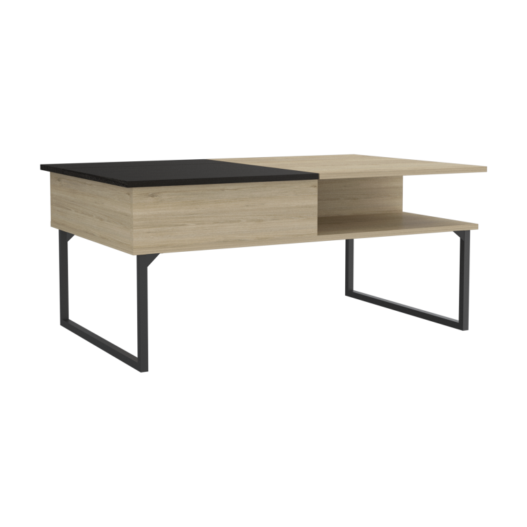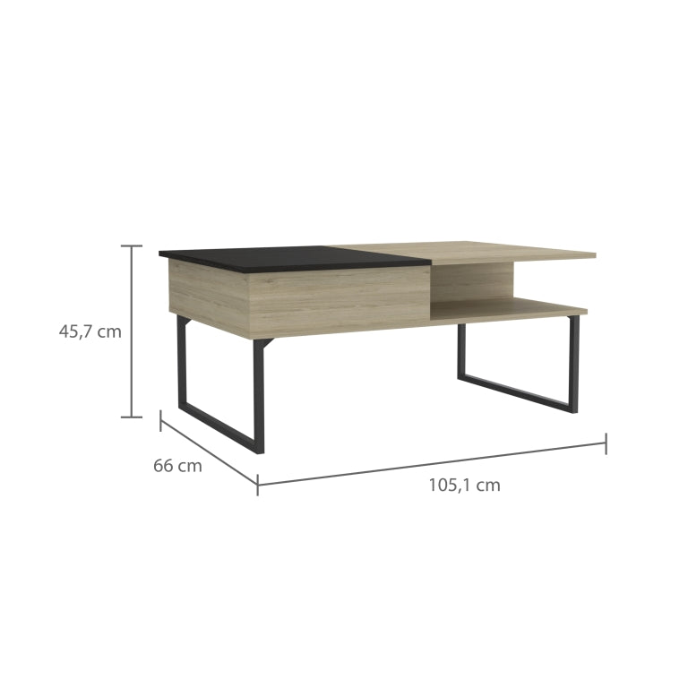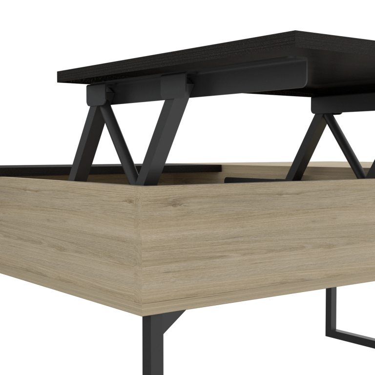 Mesa de centro 5G bicolor estilo industrial con patas de metal. Cuenta con una mesada extensible con debajo un compartimento de almacenamiento. Ideal para darle un toque distintivo a tu salón. Disponible en otra combinación de colores.