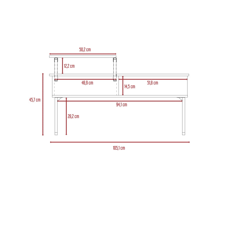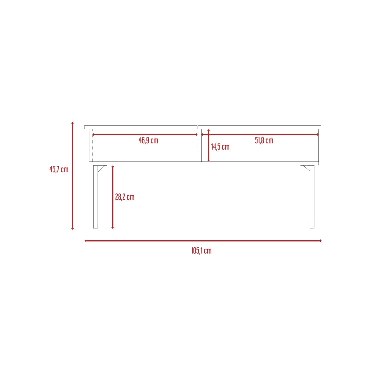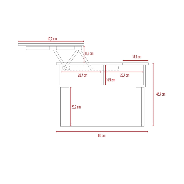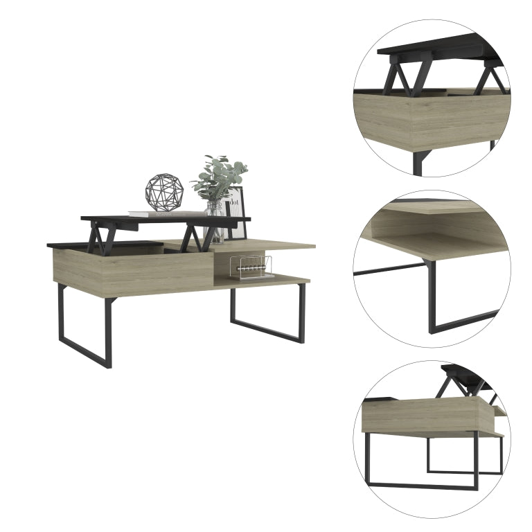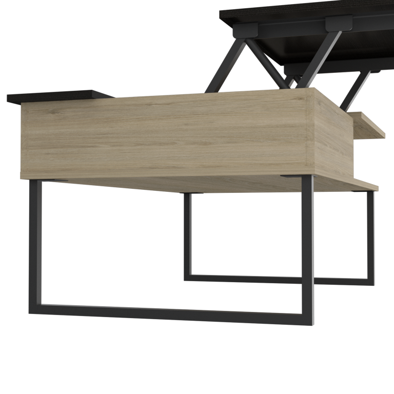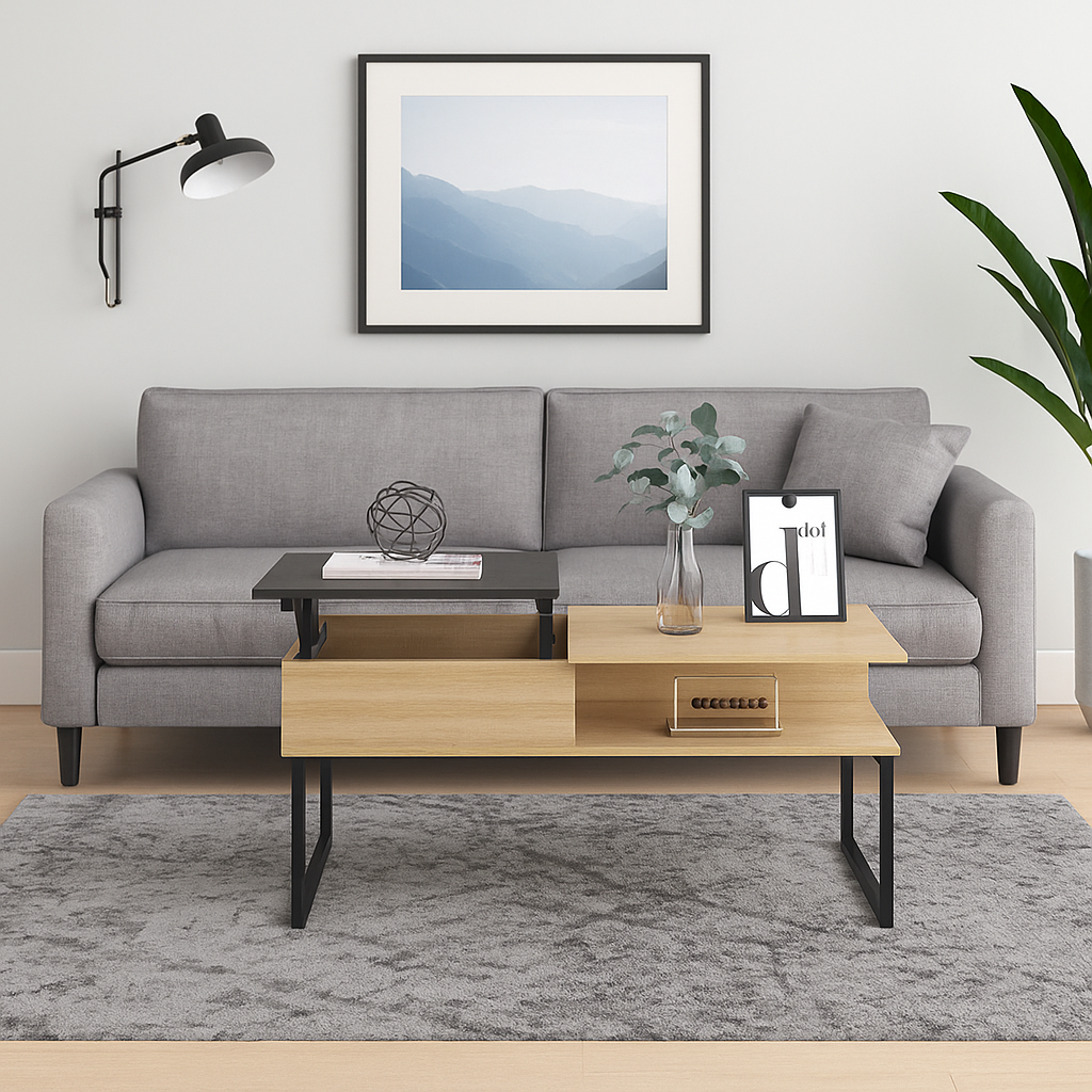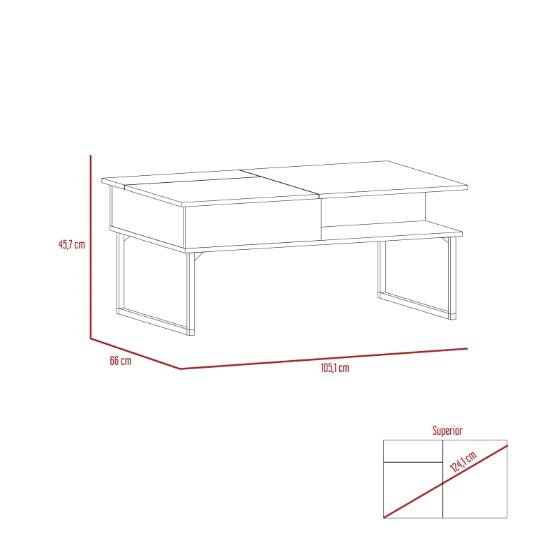 Mesa de centro 5G bicolor estilo industrial con patas de metal. Cuenta con una mesada extensible con debajo un compartimento de almacenamiento. Ideal para darle un toque distintivo a tu salón. Disponible en otra combinación de colores.