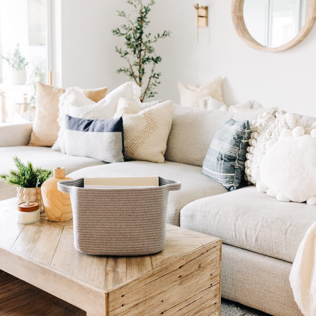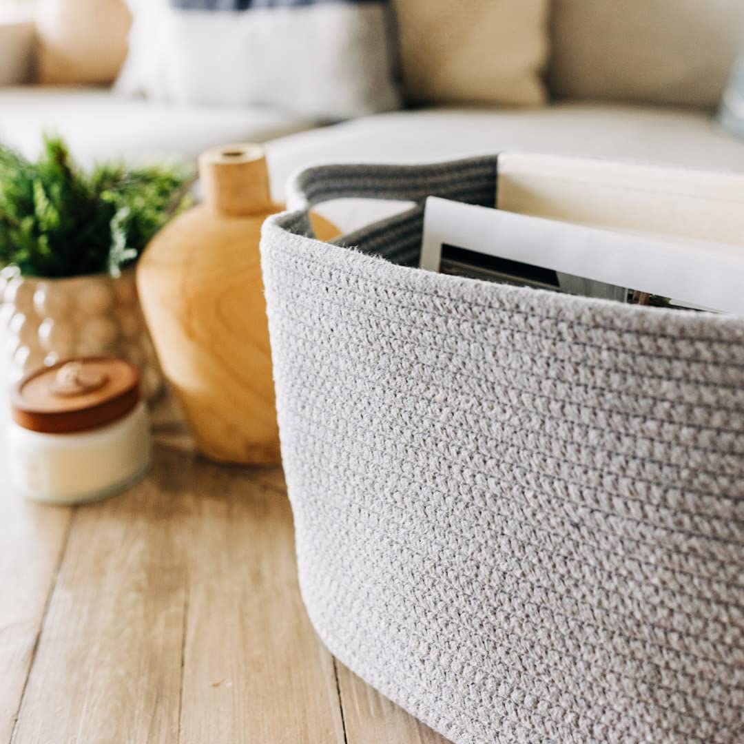 Canasto de algodón, fino y delicado, ideal para el almacenamiento de mantas, juguetes, juegos, suministros de arte y manualidades, ropa y mucho más. Para mantener orden y estilo en tu hogar.