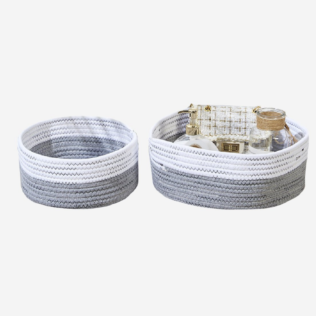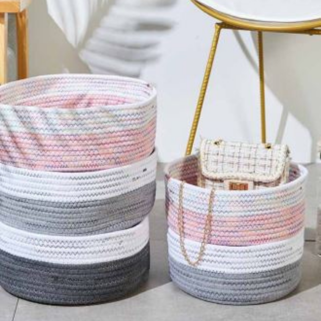 Canasto de algodón, fino y delicado, ideal para utilizar como decoración o para el almacenamiento de pequeños objetos personales, productos de higiene, suministros de arte y manualidades y mucho más. Mantén el orden y estilo en tu hogar.